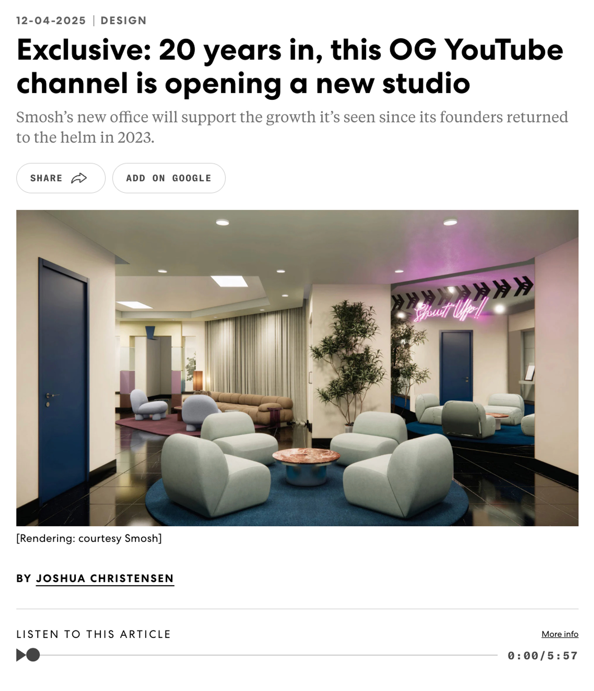 AJ Dorn represents SMOSH, a popular YouTube channel is opening a new 32,000 SF state of the art studio in Burbank